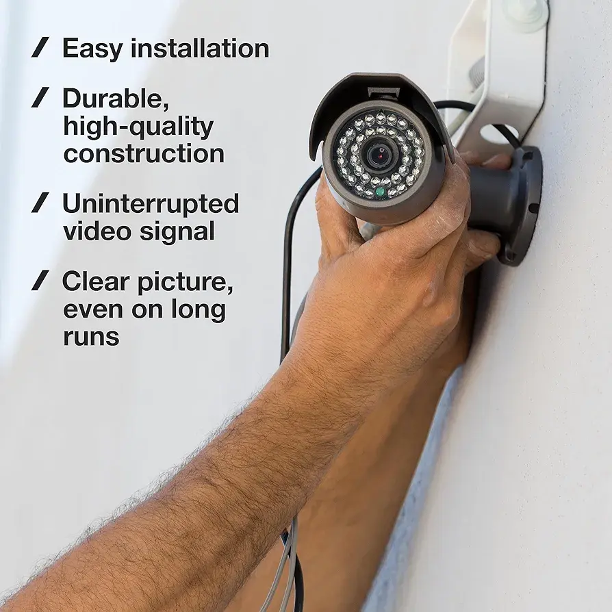 - Câble coaxial RG59 + 2C de 300 m (328 pi) pour usage professionnel transfère la vidéo et l'électricité sans perte