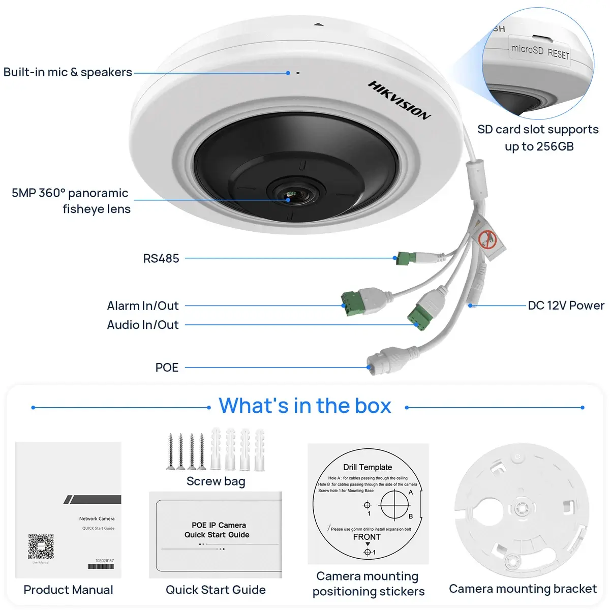 Fisheye 360° 5MP IP Hikvision caméras