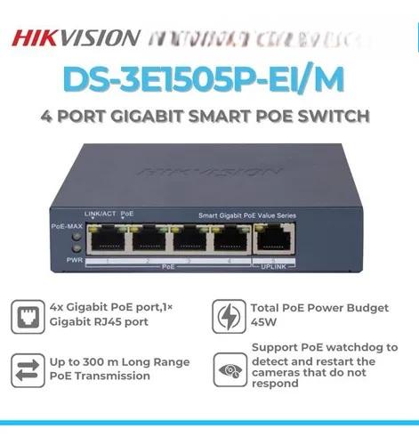 Gigabit Switch 4 Ports DS-3E1505P-EI/M Commutateur POE intelligent Hikvision